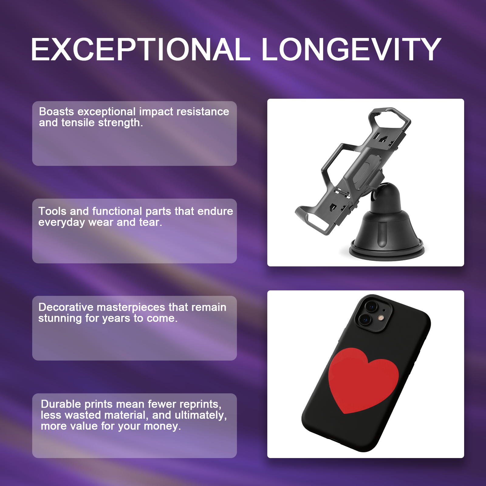 ✔ Excellent Thermal Stability – Heat deflection temperature of 95°C and glass transition temperature up to 108.9°C, ensuring structural integrity in demanding conditions.